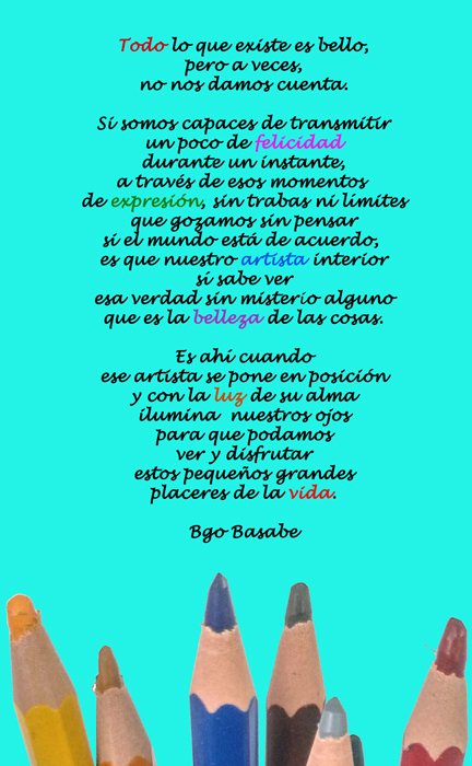 Dibujar es una experiencia fantástica, sentir que puedes trazar en una superficie todo lo que ves es una sensación increíble y sumada a las combinaciones de colores que describen emociones sin palabras es algo más que especial. Si te apetece intentarlo llámame y sal de dudas, no te arrepentirás.